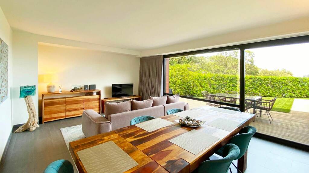 Main floor: The main floor of this house stands out for its brightness and spaciousness. There is a hall way leading to a spacious living-dining room, designed to maximise comfort and elegance, with large windows that let in natural light and offer direct access to a private terrace and garden, ideal for outdoor dining and relaxing moments. The modern and fully equipped kitchen is equipped with top of the range appliances and everything necessary for those who love cooking. There is also a guest bathroom on this floor.