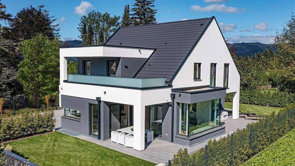 Massivbau 2019 errichtet Dreifachverglasung, teilweise elegant rahmenlos, sonst Aluminium-Fensterrahmen Sicherheitsverglasung im Erdgeschoss und Untergeschoss Elektrische Außen-Jalousien an allen Fenstern Fußbodenheizung Gas-Zentralheizung mit Brennwerttechnik Photovoltaik-Anlage 5,3 KW mit Einspeisung Kalkmarmorwandputz in allen Räumen Freischwebende Treppe in geglättetem Sichtbeton und mit Abtrennung aus Sicherheitsglas Parkett Eiche gekalkt, antik-look, französisch Fischgratverlegung Antinio Lupi Sanitärausstattung Dornbracht Armaturen Einbauküche Poggenpohl "Porsche Design" mit Gaggenau Geräten (Induktion, Heißluftofen, Mikrowelle, Dampfgarer, Warmhalteschublade, Kühlschrank, Gefrierschrank, Dunstabzug über die Arbeitsplatte) und Motion Drive an den Schränken (bloßes Antippen zum Öffnen und Schließen) BUS-System für die gesamte Elektrik Nimbus-LED Einbauleuchtung in allen Räumen Gaskamin im Wohnzimmer elektrisch steuerbar Einbauschränke im Ankleidezimmer, beleuchtet USM-Haller-Garderobenschrank im Eingangsbereich Sprechanlagen in 3 Ebenen Videokamera im Eingang Erdgeschoss Haus und Einliegerwohnung jeweils mit eigener Klingelanlage Wetterstation Doppelgarage (max. Durchfahrtshöhe 2,17 m) mit elektrischem Sektionaltor und Durchgang zum Garten 380V-Versorgung in Doppelgarage für 22/11 KW AC-Ladesystem Husqvarna Automower 420 (Rasenmähroboter) Großer Süd-Garten, vom Gartenbauer angelegt
