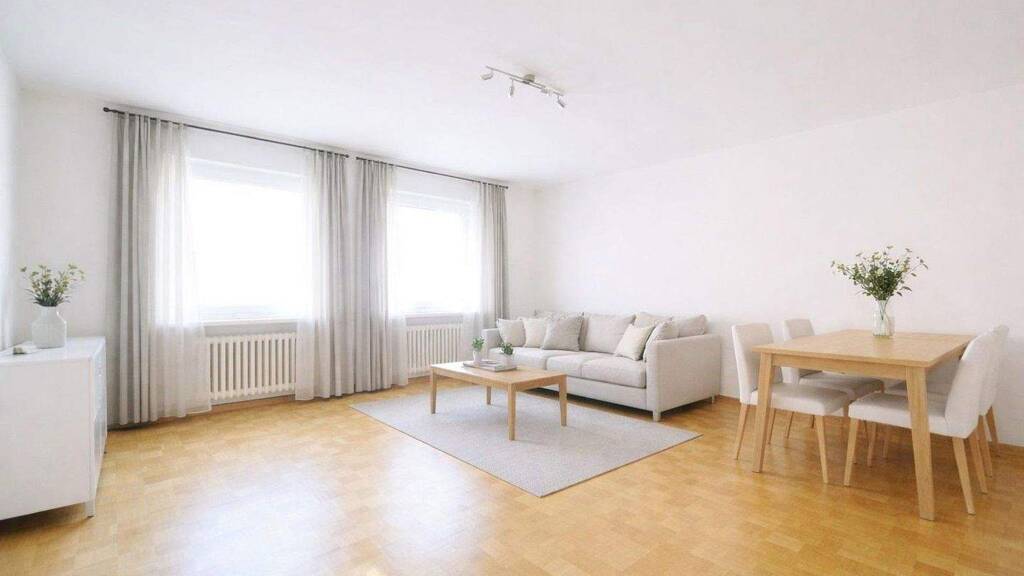 Hinweis: Es handelt sich um Originalaufnahmen der Wohnung. Die dargestellten Möbel und Einrichtungsgegenstände wurden aus Gründen der Neutralität digital angepasst bzw. ersetzt.