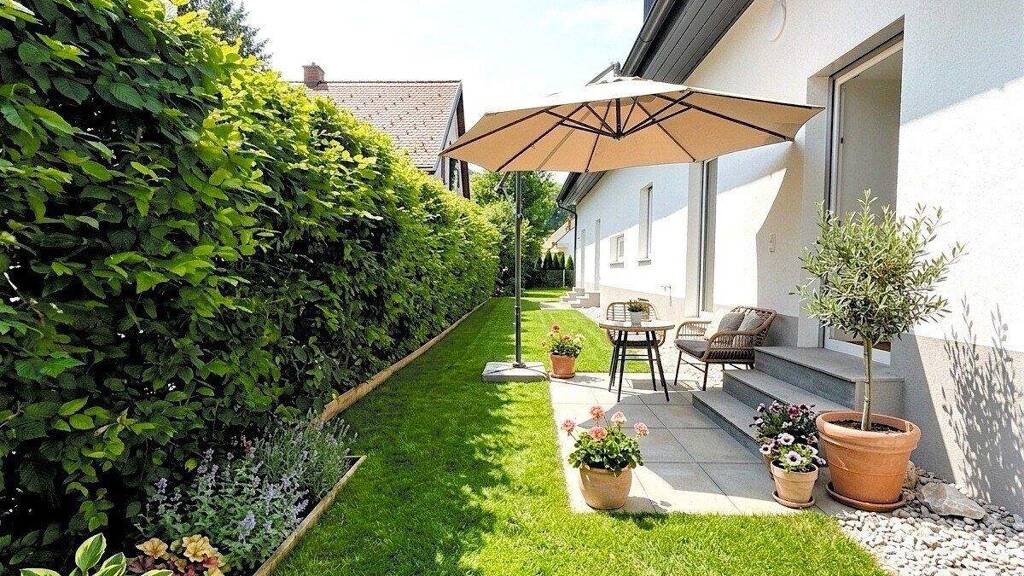 Ein besonderes Highlight ist der direkte Zugang vom Wohnzimmer auf die rund 9,24?m² große Terrasse und weiter in den liebevoll angelegten, 13,53?m² großen Eigengarten mit Ost-Ausrichtung - ideal für Frühstück in der Morgensonne oder entspannte Stunden im Grünen.