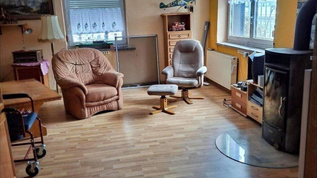 Das Objekt ist sanierungsbedürftig, bietet jedoch eine solide Basis und ist voll erschlossen. Besonders hervorzuheben sind der gemütliche Kamin im Wohnzimmer, der für ein angenehmes Wohnambiente sorgt, sowie die sonnige Terrasse im Obergeschoss, die zum Entspannen einlädt.