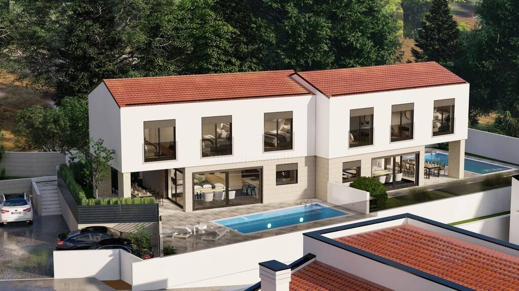 In Vrbnik auf der Insel Krk steht ein im Bau befindliches Doppelfamilienhaus mit Swimmingpool und offenem Meerblick zum Verkauf!