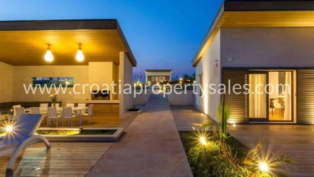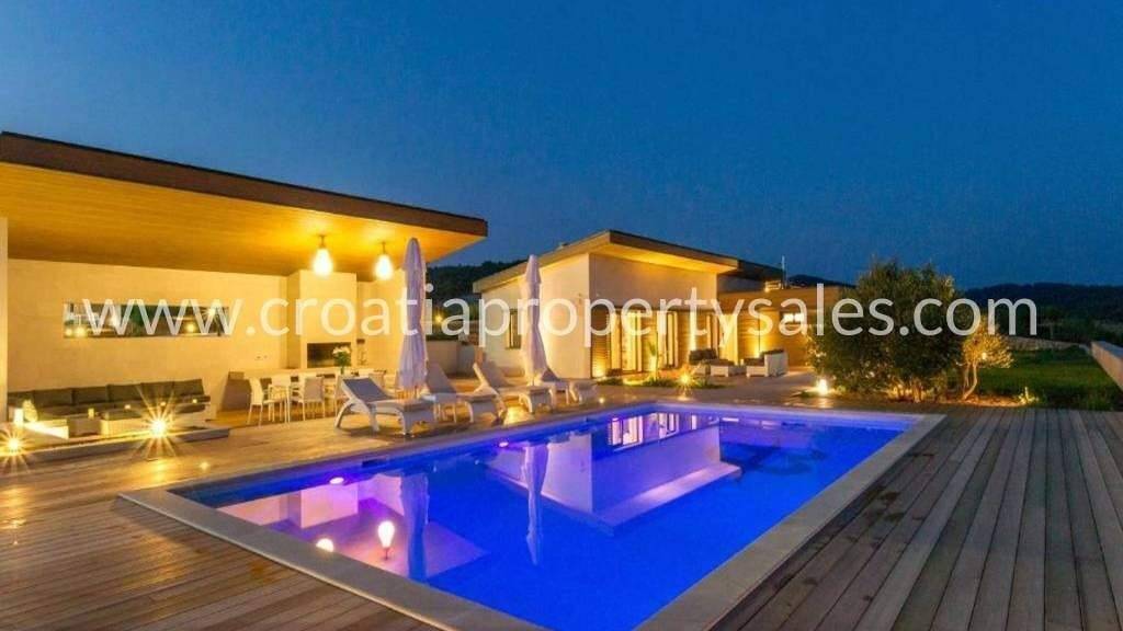 Ein außergewöhnliches Anwesen in ruhiger Lage: Eine Villa mit Swimmingpool und Tennisplatz auf einem 168.000 m2 großen Grundstück. Nur 1 km vom Meer und malerischen Buchten entfernt. Die Villa wurde 2014 erbaut und erstreckt sich über zwei Etagen mit einer Gesamtfläche von 400 m2. Im Erdgeschoss befinden sich ein modern gestaltetes Wohnzimmer mit Essbereich und Küche, ein Hauptschlafzimmer mit Bad sowie zwei weitere Schlafzimmer mit einem gemeinsamen Bad. Im Untergeschoss erwarten Sie ein weiteres Schlafzimmer mit separatem Eingang und Bad, ein Weinkeller mit Lounge und ein Spa mit Whirlpool, Massageliege, Sauna und Fitnessraum. Das Anwesen ist von Trockenmauern umgeben und verfügt über ein hochmodernes Videoüberwachungssystem, eine Alarmanlage und ein intelligentes Eingangstor. Das Grundstück ist mit mediterraner Vegetation und 68 Olivenbäumen bepflanzt. Zusätzlich befindet sich auf dem Grundstück ein separates Nebengebäude mit einem Studio-Apartment inklusive Küche, Bad und einem Schlafbereich für Personal. Eine Kombination aus Luxus und Schlichtheit, eine friedliche Oase, perfekt für Familientreffen oder zur Vermietung.