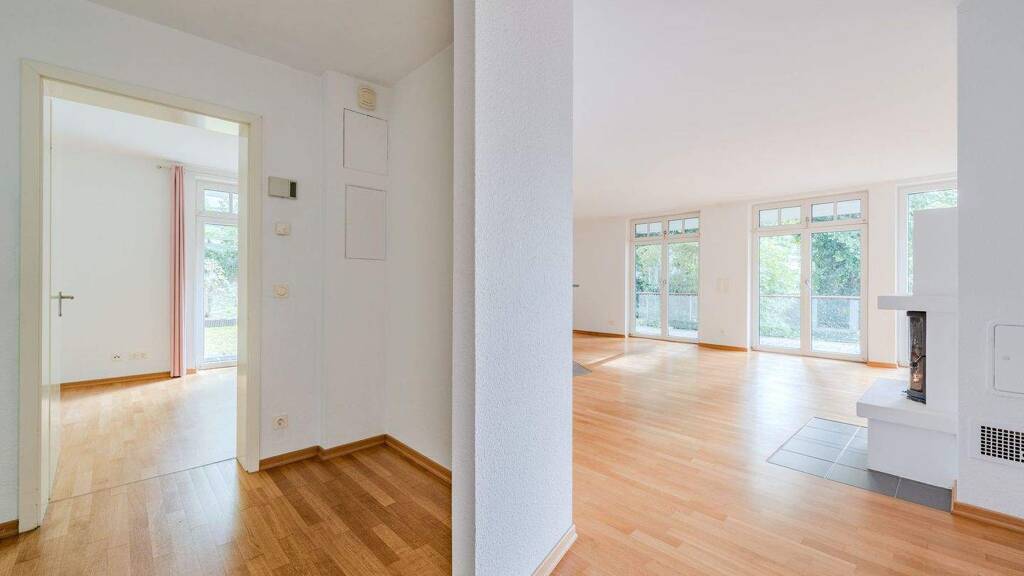 Auf rund 83?m² Wohnfläche entfaltet sich eine durchdachte Dreizimmerwohnung, die Stil, Komfort und Behaglichkeit auf harmonische Weise vereint. Herzstück ist der offen gestaltete Wohn- und Essbereich mit Kamin, der dem Raum eine warme, einladende Atmosphäre verleiht. Die Küche ist offen gestaltet und fügt sich nahtlos in den Wohnbereich ein. Bodentiefe Fenster ermöglichen einen weiten Blick ins Grüne und lassen viel Tageslicht einfallen. Der angrenzende Balkon erweitert den Wohnbereich nach draußen - ideal für entspannte Stunden unter freiem Himmel in absolut ruhiger Umgebung.