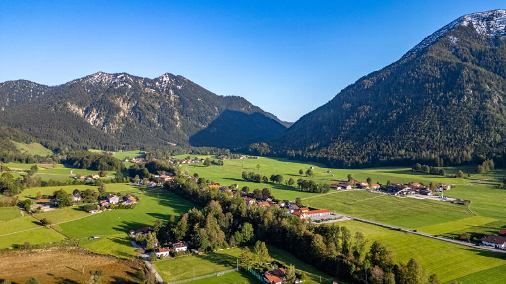 Die Zufahrt ist eine Sackgasse. Dort, wo sie endet, beginnt die geschützte Natur. Es ist der östliche Zipfel von Rottach, nur drei Minuten bis ins Zentrum. Beinahe ebenso schnell wedelt man im Winter auf den Pisten der Skigebiete Sutten, Sudelfeld und Spitzingsee.