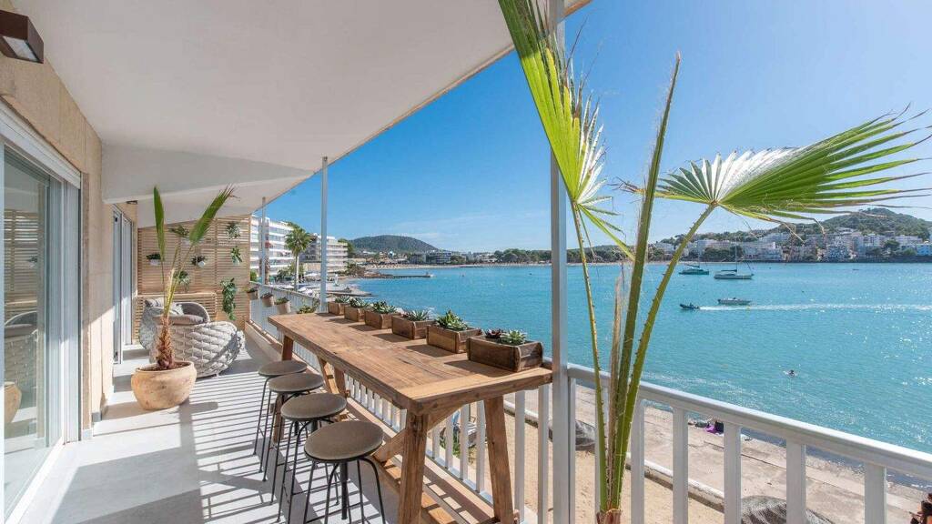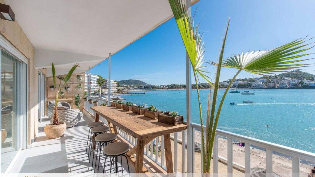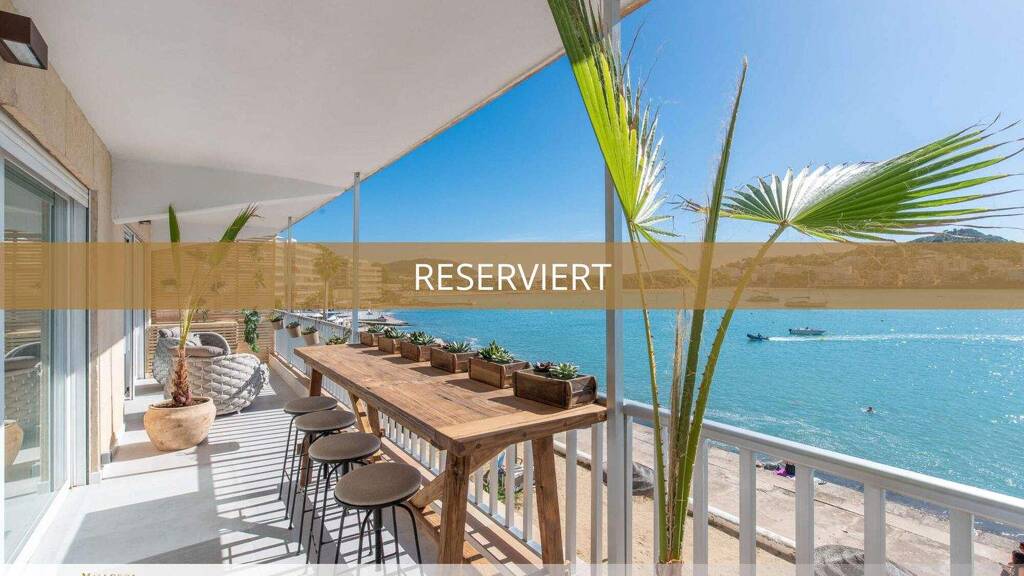 Diese exklusive Meerblickwohnung in erster Meereslinie von Santa Ponsa bietet Wohnen auf höchstem Niveau - direkt am Mittelmeer. Die vollständig sanierte und hochwertig renovierte Wohnung überzeugt durch modernes Design, helle Räume und einen unvergleichlichen Blick auf das Meer. Die durchgehende Fensterfront öffnet den Wohnraum zur Bucht von Santa Ponsa und wird von einem großzügigen Balkon begleitet, der sich über die gesamte Länge der Fassade erstreckt. Hier genießen Sie Sonne, Meer und absolute Ruhe in privater Atmosphäre. Die Wohnung verfügt über zwei lichtdurchflutete Schlafzimmer, ein elegantes Badezimmer mit bodentiefer Dusche sowie eine offene, moderne Küche, die sich harmonisch in den Wohn- und Essbereich einfügt. Der durchdachte Grundriss und die hochwertige Ausstattung schaffen ein mediterranes Wohngefühl voller Leichtigkeit und Stil. Ein besonderes Highlight ist der direkte Zugang zum Meer. Nur wenige Schritte trennen Sie vom glasklaren Wasser - perfekt für ein erfrischendes Bad am Morgen oder einen entspannten Abend mit Sonnenuntergang über dem Meer. Die Kombination aus Lage, Ausstattung und Aussicht macht diese Immobilie zu einer echten Rarität auf Mallorca.