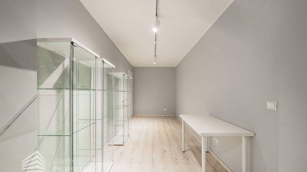 Das Erdgeschoss dieses lukrativen Lokals umfängt eine Fläche von ca. 69,34 m²; der Eingang befindet sich mittig zwischen zwei Schaufenstern. Sie betreten zu aller erst einen großen Raum mit ca. 43 m², in dem links die Treppe ins Obergeschoss hochführt und darunter mittels einer Trennwand ein kleiner Abstellraum entsteht. Gegenüber des großen Raumes befinden sich zwei verflieste Räume mit jeweils ca. 10,31 und 3,16 m². Hier im Erdgeschoss stehen Ihnen und Ihren Kunden eine Toilette mit Vorraum zur Verfügung. Einmal im Obergeschoss angekommen, welches insgesamt 89,47 m² misst, befinden Sie Sich in einer Art großzügigen Galerie mit einer Gesamtnutzfläche von mit ca. 48 m² und vier Fenster, die diesen Raum viel Licht spenden. Von hier gelangen Sie in fünf verflieste Räume, welche teils als Vorraum sowie als Lagerräume oder Behandlungsräume konzipiert sind.