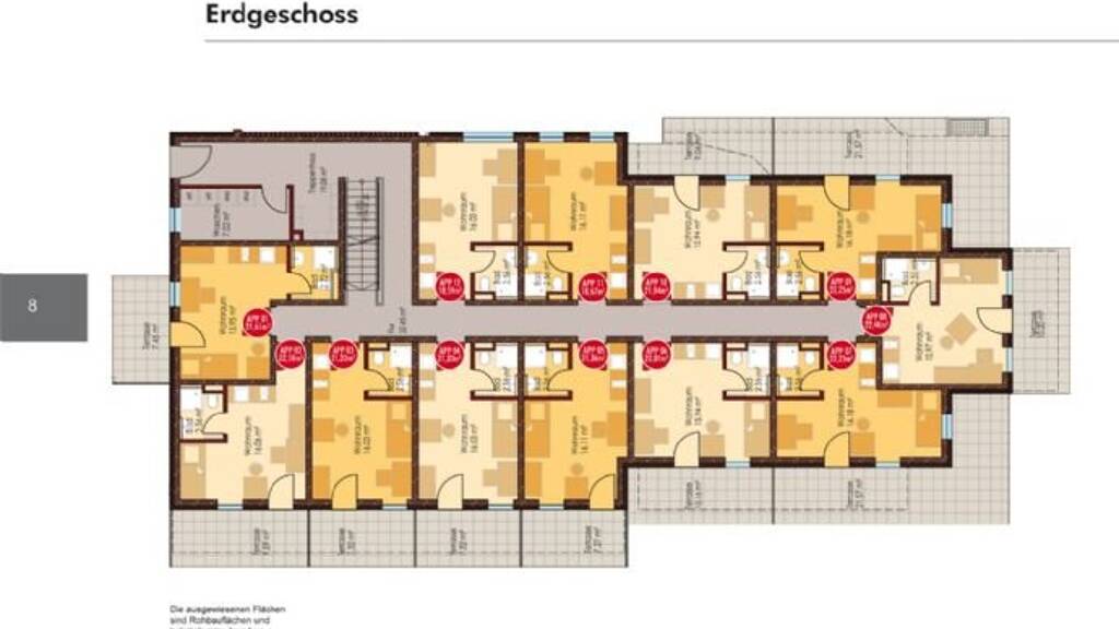 - 33 Studentenapartements von 18 m² bis 28 m² - massive Bauweise - Fenster- und Fenstertüren mit 3-fach Verglasung - Wohnraumbelüftung - Fußbodenheizung mit Einzelraumsteuerung - moderner Designfußboden im Wohnraum - Balkone und Terrassen (außer App. 11 und App. 12) - geflieste Bäder mit zum Teil bodenebener Dusche - elektrische Türöffner mit Gegensprechanlage - Schließanlage - Fahrradabstellplätze - Wäschetrockner und Waschmaschinen mit Münzeinwurf - Granitbeläge im gesamten Treppenhaus inkl. der Fluren zu den Appartements