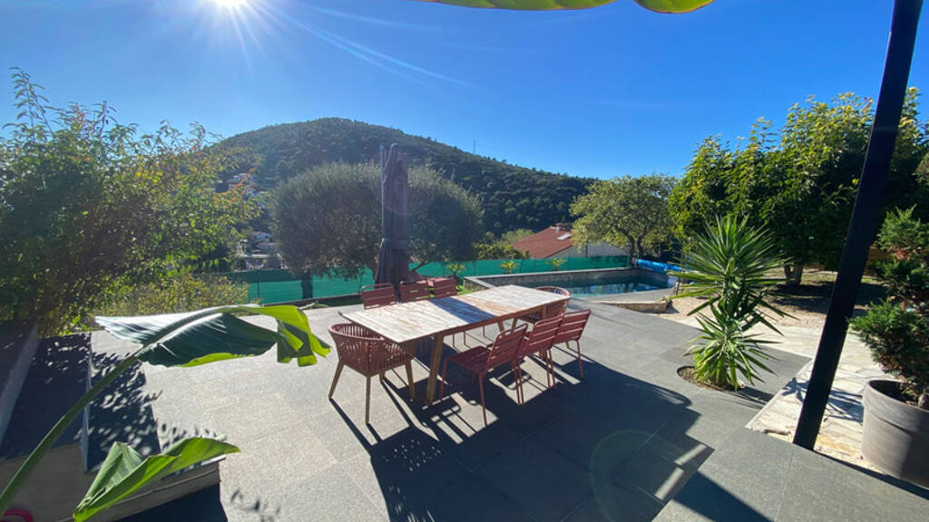 A few dozen meters from the village center, pretty renovated villa, in a quiet hillside setting, bright and magnificently exposed.
