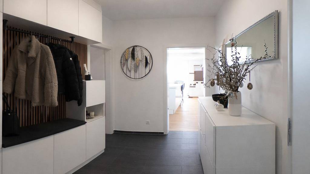 Die rund 70 m² Wohnnutzfläche gliedern sich in einen einladenden Vorraum, ein separates WC sowie ein stilvoll gestaltetes Badezimmer mit freistehender Walk-in Dusche. Das Schlafzimmer überzeugt nicht nur durch seine angenehme Größe, sondern auch durch den direkt angeschlossenen begehbaren Ankleideraum, welcher dem täglichen Komfort eine zusätzliche Ebene verleiht. Herzstück der Wohnung ist der offen gestaltete Wohn-, Ess- und Kochbereich, welcher durch seine Großzügigkeit und die zahlreichen Fensterflächen ein helles und freundliches Wohngefühl vermittelt.