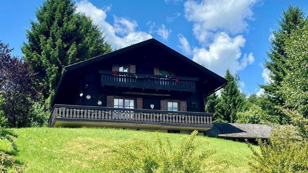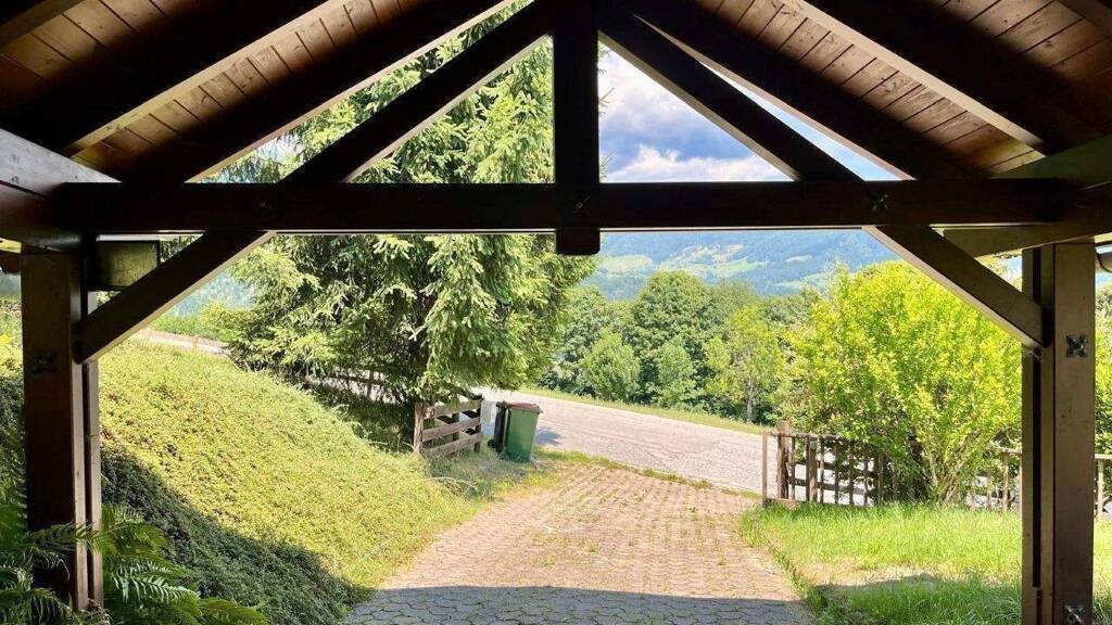 Dieses Landhaus in Holzbauweise BJ 1982 befindet sich in herrlicher Aussichtslage am Verditz in Kärnten auf ca. 960 m Seehöhe! Gesamtfläche der Grundstücke 2538 m2 davon ca.1120 m2 Bauland Dorfgebiet der Rest Grünland mit altem Baumbestand und absoluter Ruhe. Das Haus überzeugt durch sein alpines Ambiente, Zirbenküche, Kachelofen, Holzdecken etc. Dazu kommen ein überdachter Pool (Luftwaermepumpe dient als Poolheizung), ein Gartenhaus und ein Carport. Traumhafte Panoramalage mit Blick in die umliegende Bergwelt. ein Strommast ist in der Naehe und Stromleitungen zu sehen. Mehrere Balkone bieten eine herrliche Aussicht. Elektroheizung + Kachelofen dienen als Heizung. Das Landhaus hat ca 180 m2 Wohn-Nutzfläche. Erdgeschoss (Wohnebene): •Großzügiger Eingangsbereich mit Zugang zum Ober- und Untergeschoss •Weitläufiges Wohnzimmer mit traditionellem Kachelofen, Zugang zum Balkon und gemütlicher Sitzecke •Separate Küche in Zirbenholz •Badezimmer mit Wanne, WC und Bidet Obergeschoss: •Drei Schlafzimmer, davon zwei mit Balkonzugang •Badezimmer mit Dusche Untergeschoss: •Großer Freizeitraum mit Sauna und Dusche •Technikraum mit Poolanlage •Garage + Carport !!