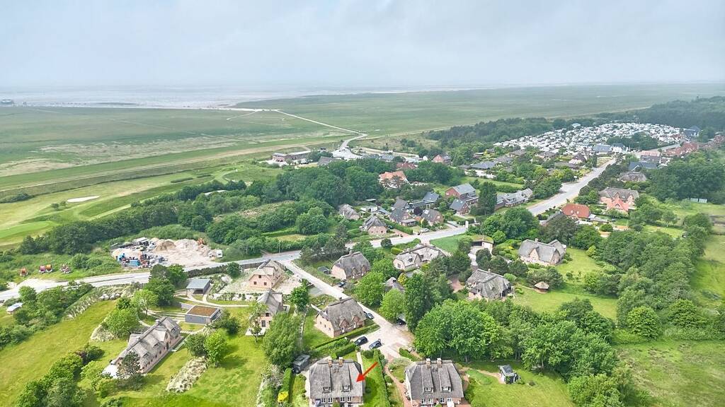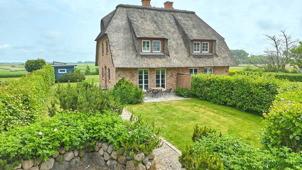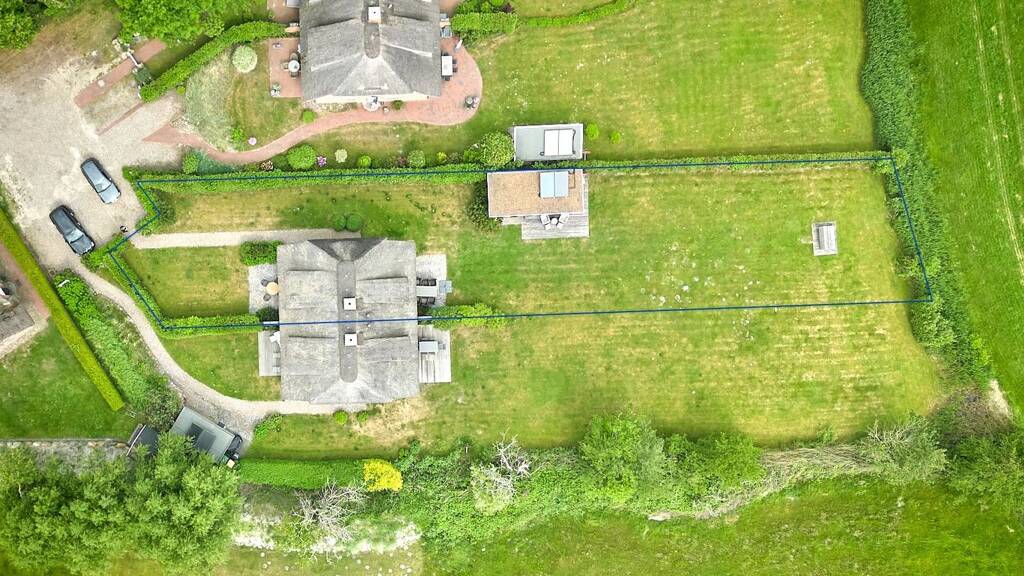 Das real geteilte und damit eigene Grundstück mit einer Größe von 865 m² bietet ausreichend Raum zur freien Entfaltung. Alle umliegenden Nachbarhäuser liegen auch unter Reet, auf ebenfalls großzügigen Grundstücken – so bietet sich ein harmonisches Bild und ausreichend persönliche Komfortzone. Der herrliche Ausblick auf benachbarte Felder, Wiesen, Marschland und die gewachsene Knicklandschaft machen den idyllischen Eindruck perfekt. Der Böhler Strand ist nur 550 Meter entfernt, zum Nordsee-Golfclub sind es nur 600 Meter.