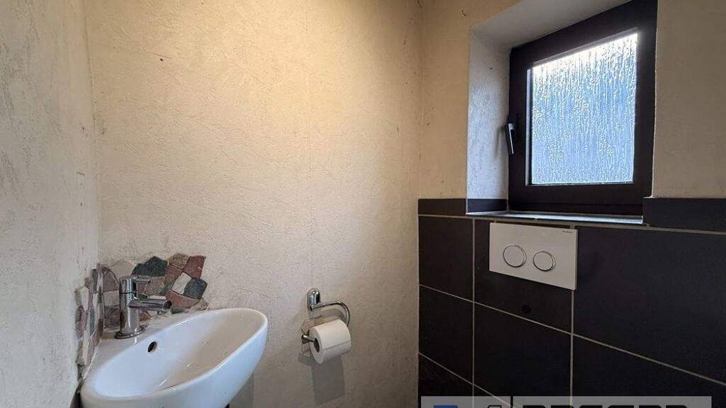 | . | Auszug der Ausstattungsdetails | . | - Stahlbetondecken / Dachsparren / Tonziegel - Gaszentralheizung - Böden: Wohnbereich Parkett / Zimmer Laminat / Bäder Fliesen - Innentreppe mit Massivsteinstufen & Stahlgeländer // Holztüren - Gäste-WC im Erdgeschoss // Badezimmer mit Badewanne & Dusch 1. Obergeschoss - Fenster: doppelisolierte Kunststofffenster mit manuellem Rollläden - Garage im Erdgeschoss der Immobilie - Garten & Terrasse - u.v.m.