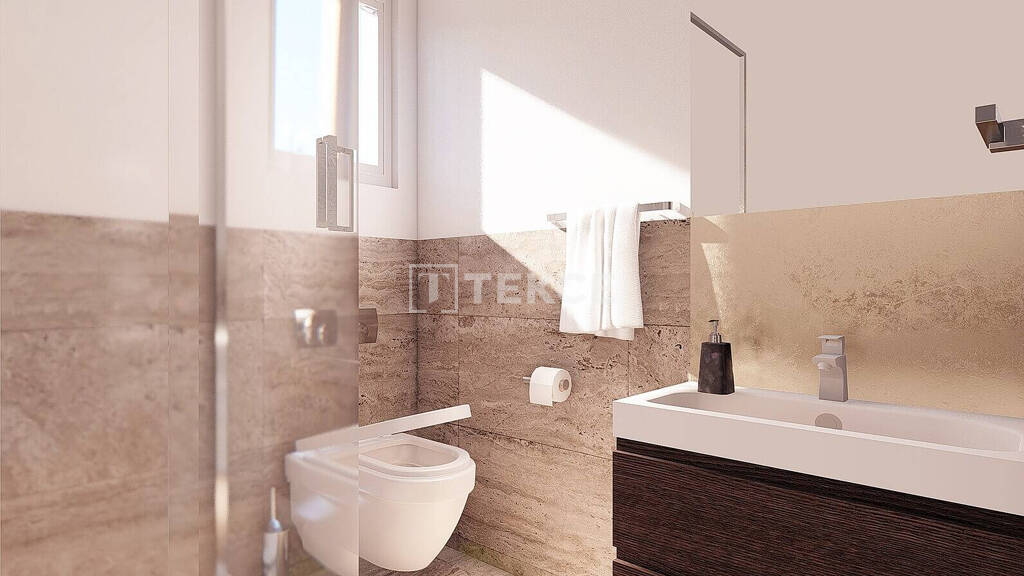 Stilvolle Wohnungen in Meeresnähe in Nordzypern Iskele Iskele ist eine der beliebtesten Regionen Zyperns mit seinen ausgedehnten Sandstränden, dem türkisfarbenen Meer und einem günstigen Klima, das 300 Tage lang anhält. Im Laufe der Geschichte hat die Region viele Zivilisationen beherbergt, was sie zu einer attraktiven Gelegenheit für Investoren macht. Der berühmte MacKenzie Beach befindet sich in Yeni Iskele. Die Wohnungen in Yeni Iskele sind 600 m vom Pera MacKenzie Beach Club, 900 m vom Long Beach, 2 km von der MacKenzie Bay, 4 km vom Zentrum von Iskele, 14 km vom Gazimagusa State Hospital, 15 km von der Eastern Mediterranean Universität, 16 km vom Zentrum von Gazimagusa, 21 km vom Gazimagusa Port, 49 km vom Ercan Flughafen und 70 km vom Larnaca Internationalen Flughafen entfernt. Die Wohnung in einem Ein-Block-Projekt ist auf einem 700 qm großen Grundstück gebaut. Die Wohnung hat 1 Schlafzimmer. Für jede Wohnung ist ein privater Parkplatz im Erdgeschoss reserviert. Es gibt eine Video-Gegensprechanlage am Eingang des Gebäudes und der Wohnung. Die Wohnungen sind mit Elementen wie einem Wohnzimmer mit offener Küche und Balkon ausgestattet. Auf nassen Böden werden rutschfeste Keramikfliesen verwendet. Ausstattungselemente wie Garderobenschränke, Schlafzimmerschränke, Küchenschränke und Badezimmerschränke sind aus erstklassigen Materialien gefertigt. Die Immobilie verfügt über zahlreiche Komfortmerkmale wie eine zentrale Satellitenanlage, Internet-Infrastruktur, Brandmelder und Klimaanlagen. ECN-00217