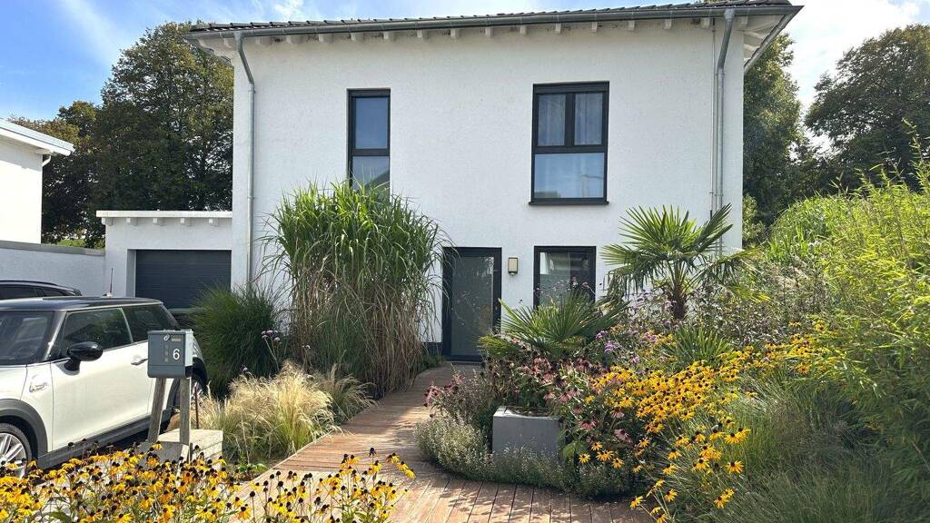 - Moderne Einbauküche - Großzügige, überdachte Terrasse mit elektrischem Sonnenschutz für entspannte Stunden im Freien - Komfortable Fußbodenheizung im gesamten Haus - Ca. 8 m lange Garage - Wallbox vor der Garage für umweltfreundliches Laden von E-Fahrzeugen - Ansprechende Zuwegung im Vorgarten mit Holzgestaltung - Pflegeleichte Gehwegplatten rund um das Haus - Offener Gartenunterstand - Moderne Bäder mit bodentiefen Duschen und hochwertiger Ausstattung