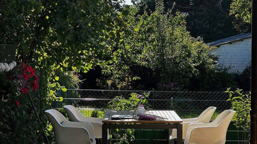 Die Einliegerwohnung bietet ein Schlafzimmer sowie ein offene Einbauküche, ein Duschbad und ein Gäste-WC. Sie verfügt ebenfalls über eine Terrasse sowie einen kleinen Garten.
