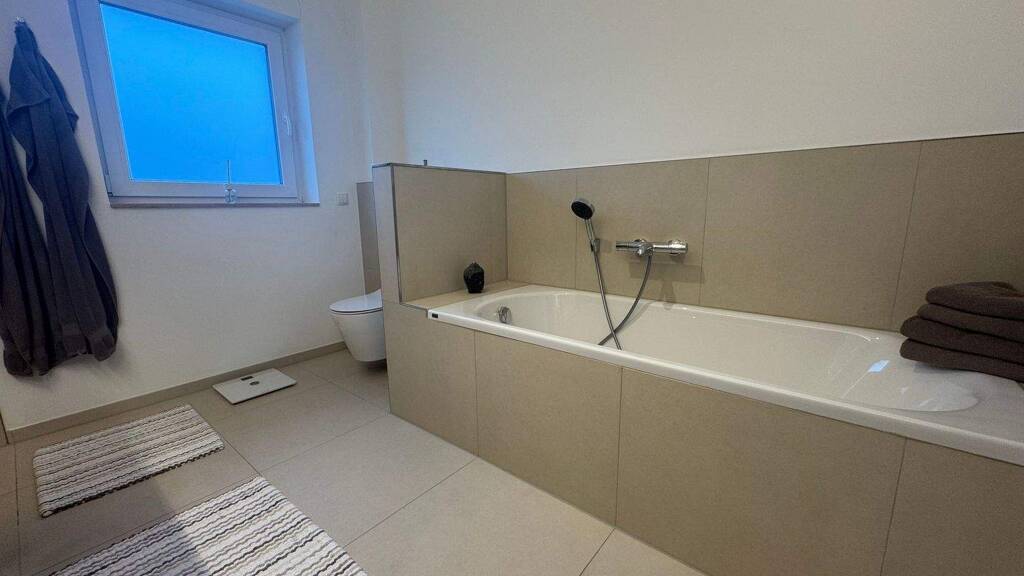 Die Hauptwohnung verfügt über 4 Schlafzimmer, einen geräumigen Wohn- Essbereich mit offener Einbauküche sowie 2 Bäder und ein Gäste-WC. Die Terrasse ist mit einer Glasüberdachung versehen.