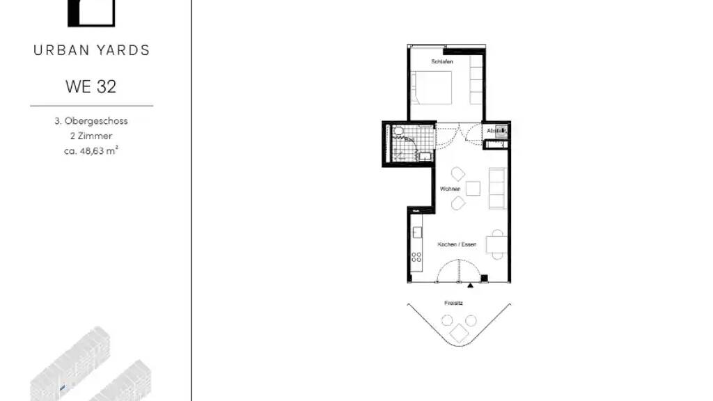 2 Zimmer • 48,6 m² • 3. Geschoss • frei ab sofort