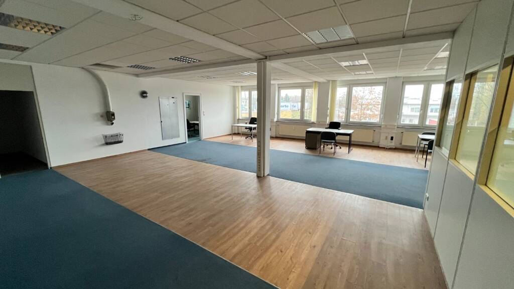 Diese moderne Büroflächen im ersten Obergeschoss bieten auf 400 m² Raum für Ihre geschäftlichen Aktivitäten. Durch die großzügigen Fensterfronten wird die Fläche von Tageslicht durchflutet, schafft eine helle Arbeitsatmosphäre und fördert das Wohlbefinden Ihrer Mitarbeiter.