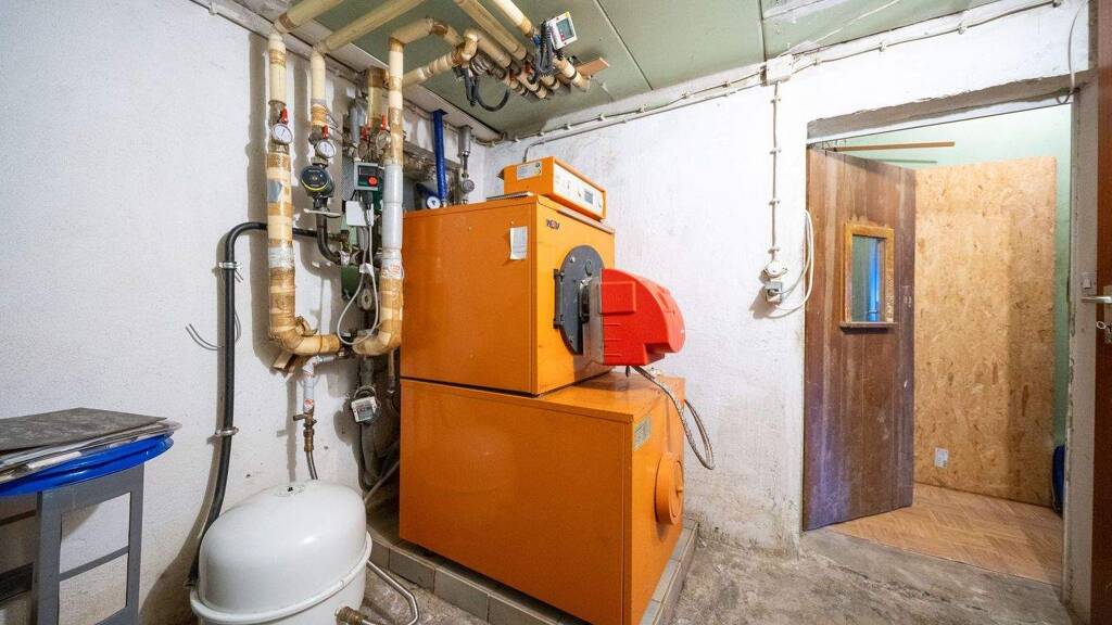 Das Grundstück hält viel Privatsphäre bereit und liegt mit der schmalen Seite zur Straße hin. Eine lange Zufahrt führt entlang des Grundstücks bis in den hinteren Bereich, wo sich eine der Garagen befindet, während die andere neben dem Haus liegt. Das Gelände ist recht ebenerdig und weist einseitig eine leichte Steigung zum Nachbargrundstück auf. Momentan steht mittig ein 1910 gebautes Einfamilienhaus, das eine Wohnfläche von ca. 156 m² hat, die sich auf insgesamt 6 Zimmer verteilt. Darüber hinaus sind zwei Küchen, zwei Badezimmer, ein Gäste-WC, ein Balkon und ein Dachboden vorhanden. Die unteren Etage ist als eine Art Einliegerwohnung konzipiert, wobei sich das Wohnzimmer und das daran angrenzende Schlafzimmer rechts vom Treppenhaus befinden und die Küche sowie das Badezimmer links davon. Bevorzugt eignet sich das Haus daher zur Nutzung als Einfamilienhaus oder zum Bewohnen mit zwei Generationen, die untere Etage könnte bspw. hervorragend als teilseparierten Bereich für eine heranwachsenden Teenager dienen. Die Immobilie wurde 1998 mit einer neuen Öl-Heizung ausgestattet und in den 80er Jahren wurde zum Teil die Elektrik und die Wasserleitungen erneuert. Das Badezimmer im 1. OG wurde in den 90er renoviert. Sowohl das Duschbad im EG als auch das Wannenbad im 1. OG sind mit Fenstern ausgestattet, die Warmwasseraufbereitung erfolgt dezentral über Warmwasserboiler.