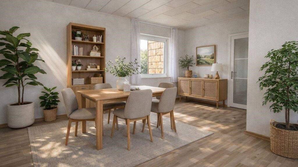 Diese Etagenwohnung aus dem Jahr 1972 überzeugt auf rund 83 m² durch eine helle, offene Raumwirkung und eine angenehm klare Raumstruktur. Die großzügig geschnittenen Räume wirken freundlich und einladend, sodass bereits beim Betreten ein stimmiges Gesamtbild entsteht. Der Wohnbereich öffnet sich zur großen Balkontür.