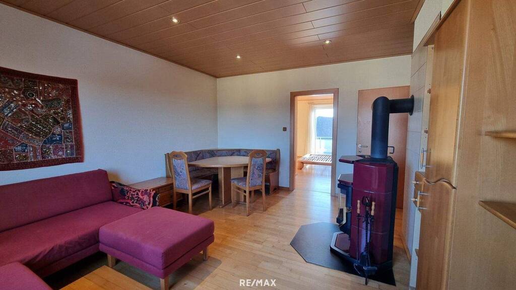 * Wohnzimmer mit Schwedenofen, der für wohlige Wärme und besondere Wohnatmosphäre sorgt