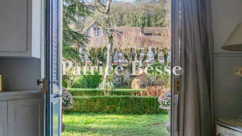 The residenceThe main facade overlooks the garden and is punctuated by a number of regular rectangular openings fitted with louvred shutters and underscored on the first floor by a moulded stone stringcourse. The double-leaf, blue-painted, oakwood entrance door is lightly offset to the left and boasts finely crafted wrought-iron decorations. It is partially glazed and topped by a fanlight window protected by ironwork. It is framed by pilasters and topped by an entablature, both of which are soberly moulded.