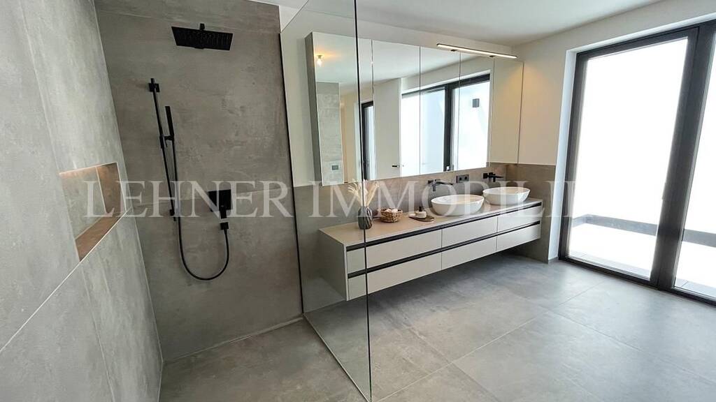 Hochwertigste Fenster, die innen aus Echtholz und außen aus Aluminium gefertigt sind, sowie die moderne und hochqualitative Eingangstür unterstreichen den luxuriösen Charakter des Hauses. Sehr exklusive raumhohe und wandbündige Innentüren ergänzen das edle Ambiente und sorgen für ein gehobenes Gesamtbild.