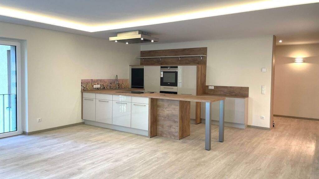 Der offene Wohn-, Ess- und Kochbereich mit großzügigem Balkon (9 m²) gibt der Wohnung ein besonderes Flair.
