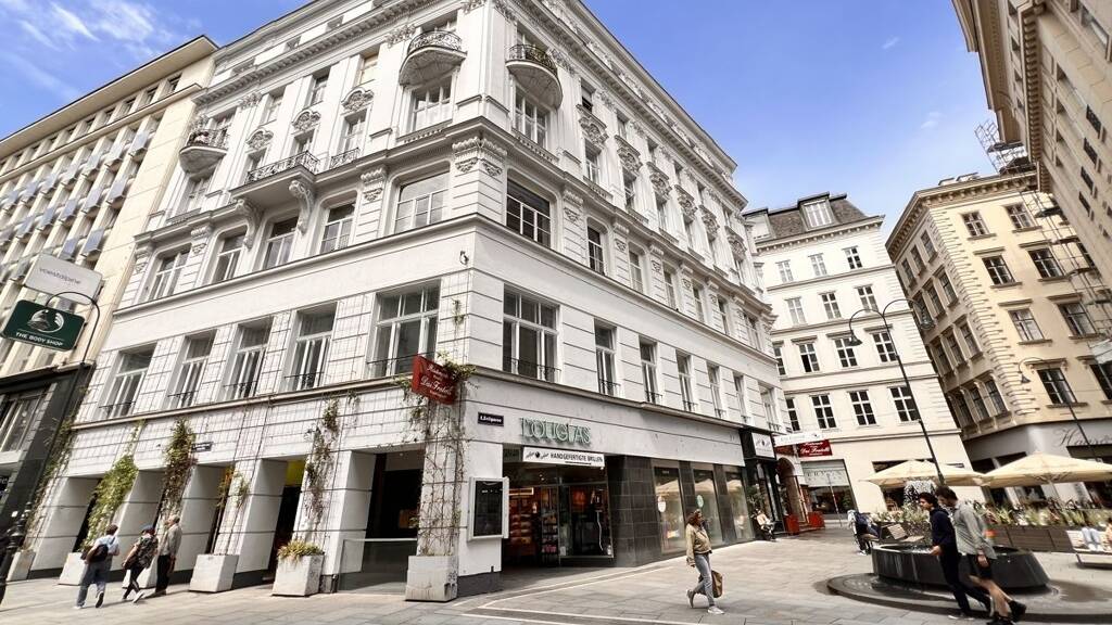 Hochfrequenzlage Rotenturmstraße (Arkaden) am Eck zum Platz Ertlgasse. Die U1 Stephansplatz sowie U4 Schwedenplatz bieten eine gute Verkehrsanbindung.