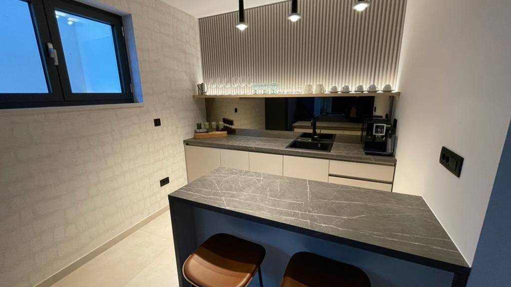 Die Villa wurde im Jahr 2023 mit modernster Technologie und hochwertigen Materialien gebaut. Für eine hohe Energieeffizienz sorgen außen eine 10 cm dicke Styroporfassade und innen 6 cm Steinwolle. Interne Trennwände bestehen aus Knauf-Platten und Akustikwolle, was für eine hervorragende Schalldämmung sorgt. Alle Räume sind mit Inverter-Klimaanlagen und einem Zentralstaubsauger ausgestattet, die gesamte Anlage (inkl. Keller) verfügt über eine Fußbodenheizung. Die Fenster sind mit dreischichtigem Glas und elektrischen Aluminiumjalousien ausgestattet. Auf dem Dach des Gebäudes befindet sich eine Solarwarmwasseranlage.