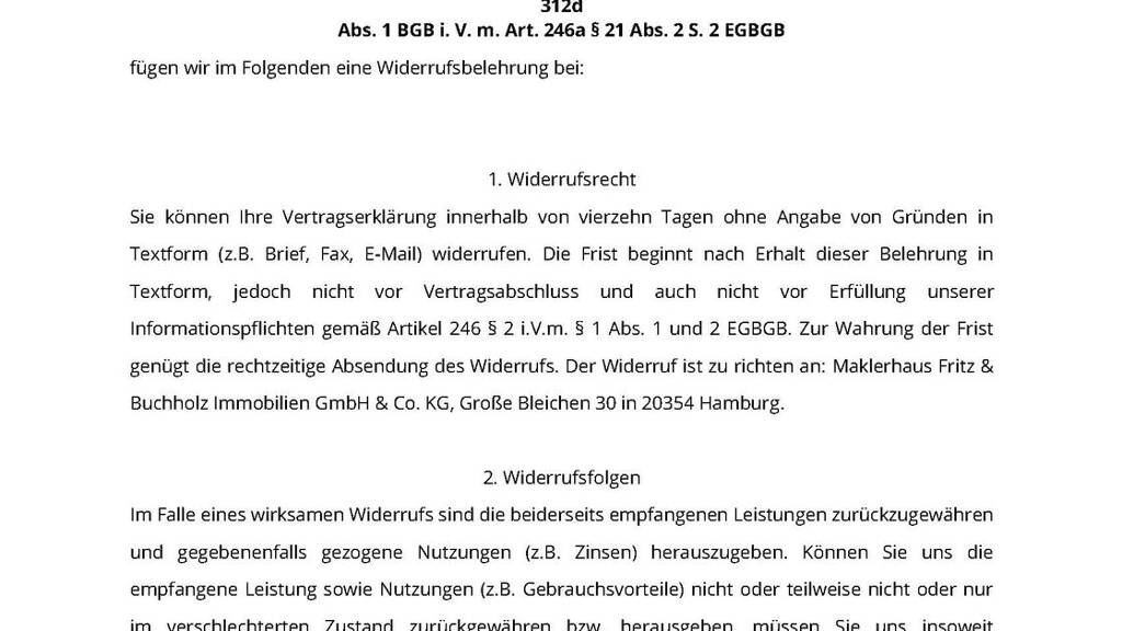 Gerne senden wir Ihnen aussagekräftige Unterlagen zu, bitten jedoch aus datenschutzrechtlichen Gründen zuvor um die Aufgabe Ihrer vollständigen postalischen Anschrift und Telefonnummer. Eine Besichtigung ist nach vorheriger Terminvereinbarung möglich. Vielen Dank für Ihr Verständnis. Unseren Hinweis zum gesetzlichen Widerrufsrecht entnehmen Sie bitte der Anlage.