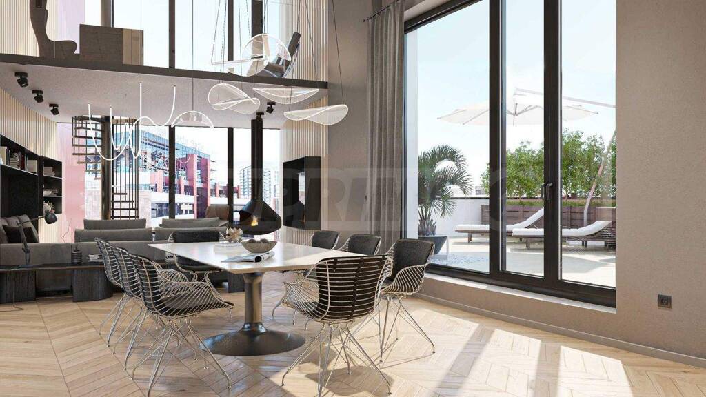 Wir präsentieren Ihnen ein außergewöhnliches Penthouse mit vier Schlafzimmern zum Verkauf in einem prestigeträchtigen und traditionsreichen Gebäude in Sofia, in der Nähe des Bulgaria Blvd. Das Gebäude besticht durch moderne Architektur, hochwertige Bauweise und luxuriöse Gemeinschaftsbereiche.