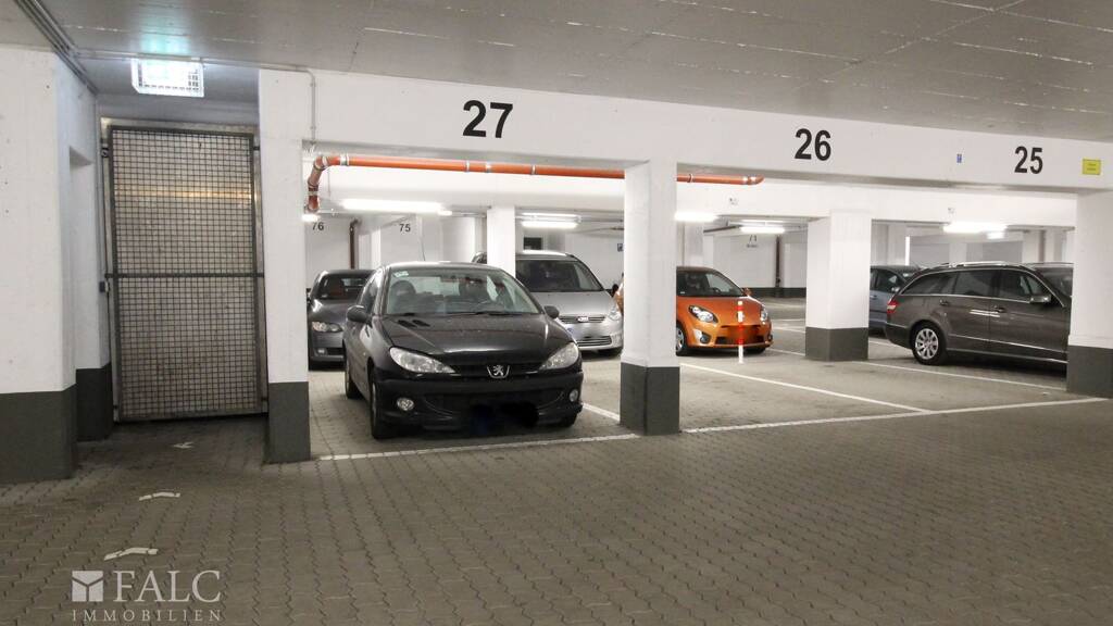 Der Stellplatz befindet sich in einer gepflegten Tiefgarage, die durch ihre solide Bauweise und die Verwendung hochwertiger Materialien überzeugt. Die Wände sind in einem hellen Weiß gehalten, was zur angenehmen Helligkeit der gesamten Anlage beiträgt. Dies sorgt nicht nur für eine freundliche Atmosphäre, sondern erleichtert auch das Einparken und Manövrieren.