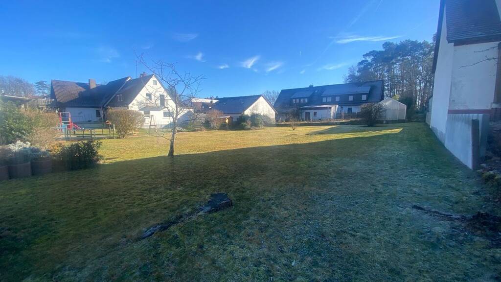 Die Bebaubarkeit wurde im Vorfeld bei der Gemeinde in Rückersdorf erörtert. Kein Bebauungsplan - Bebauung analog der Nachbarschaft, somit Einfamilienhaus mit EG, OG und Garage/Carport möglich, Dachform vermutlich Satteldach.