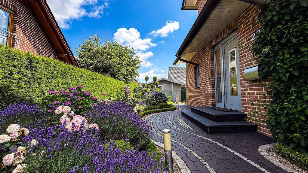Hochwertige Pflasterung der Einfahrt und gepflegte Außenanlagen