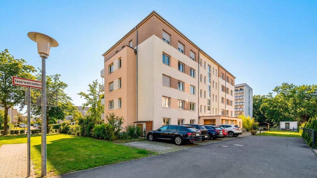 Zur Ausstattung der Wohnung zählen eine effiziente Fußbodenheizung, die mit Fernwärme betrieben wird, sowie Kabel-TV. Die Böden sind teilweise gefliest, teilweise mit Laminat und Vinyl ausgelegt. Ein Personenaufzug sorgt für zusätzlichen Komfort. Der Balkon bietet Platz im Freien. Zur Wohnung gehört außerdem ein Kellerraum und ein Außenstellplatz, der für das Abstellen eines Fahrzeuges genutzt werden kann.
