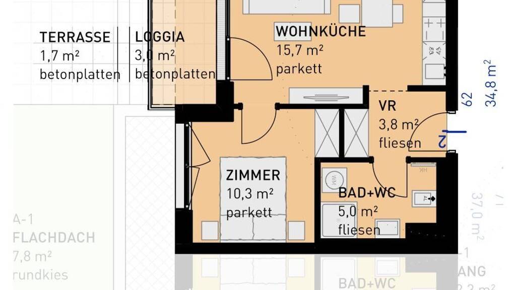 2 Zimmer  •  34,8 m²  •  2. Geschoss  •  frei ab 30.06.2028