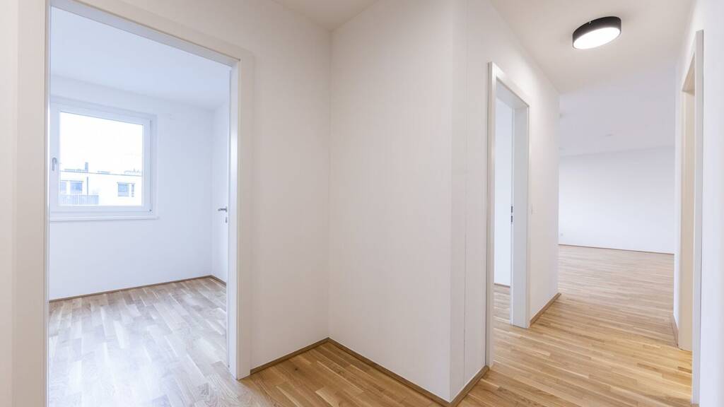 Die Wohnungen verfügen über große, bodentiefe Fenster, die viel natürliches Licht hereinlassen und für eine angenehme Wohnatmosphäre sorgen. Hochwertige Materialien wie Parkettböden in den Wohnbereichen und moderne Fliesen in den Badezimmern unterstreichen den gehobenen Anspruch des Objekts. Je nach Stockwerk bieten die Wohnungen eine wunderbare Aussicht auf die grüne Umgebung oder die beeindruckende Skyline der Donau City.