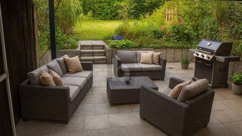- überdachte 20m² Terrasse mit Gartenanteil