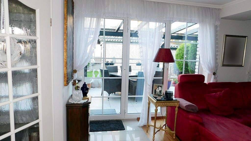 Bei der Ausstattung des Objektes wurden hochwertige Materialien verwendet. Die Böden sind mit hellen, cremefarbenen großen Fliesen versehen. Im Wohnzimmer fügt sich ein Echtholzparkettboden hervorragend in die pflegeleichten gefliesten Böden ein. Die Türen der Räume sind in weiß gehalten und ebenfalls hochwertig. Die Sprossen-Fenster sind isolierverglast und lassen viel Tageslicht in das Objekt. Im Wohnzimmer erwartet Sie eine große, bodentiefe Fensterfront mit stilvollen Fenstertürelementen. Von dort aus gelangen Sie auf eine mit einer Glaskonstruktion überdachte, hell geflieste Sonnen-Terrasse mit Edelstahlgeländer und haben von dort auch einen Zutritt zum sehr gepflegten Garten mit einer weiteren kleinen Terrasse am Garagenanbau.