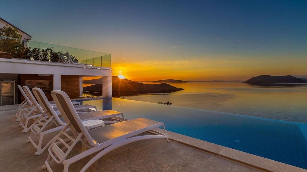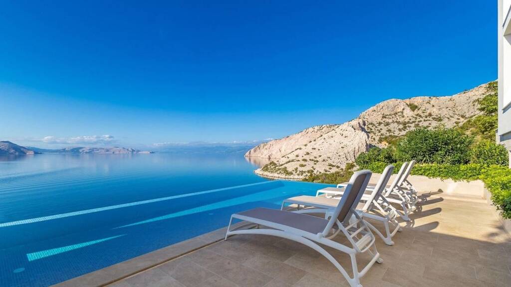 Das Haus ist kaskadenförmig angelegt und in den oberen beiden Etagen befinden sich vier Schlafzimmer mit jeweils eigenem Bad und Balkon, während sich im Erdgeschoss ein Wohnzimmer, eine Küche mit Esszimmer und eine Toilette befinden. Es öffnet sich zu einer Terrasse und einer Seitenterrasse mit einem überdachten Bereich für Geselligkeit. Eine Treppe führt hinunter zur untersten Kaskade mit einem großen Infinity-Pool und einem Sonnendeck. Das Haus ist voll möbliert und wird für touristische Zwecke genutzt. Es gibt Stufen, die von dem Immobilie zum Meer führen. Eine Rarität im Angebot!