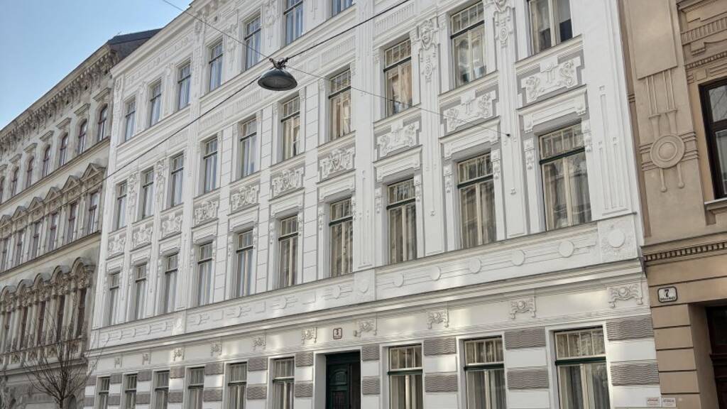 Eine schöne Wohnung im 3. Stock eines Gründerzeithauses mit Stuckfassaden und mit Lift.Das Stiegenhaus ist mit originalen Bodenfliesen, Rundboden und Stuckverzierungen ausgestattet.