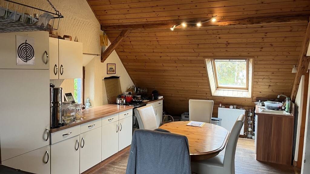 Im Dachgeschoss befindet sich ein großzügiger Wohn- und Essbereich, der durch seine Offenheit überzeugt, sowie eine separate Toilette. Dieser Bereich bietet vielfältige Nutzungsmöglichkeiten, beispielsweise als zusätzlicher Wohnraum, Atelier oder Rückzugsort.