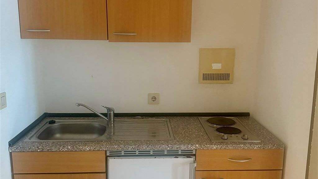 Beim Betreten der ca. 28 m² großen Wohnung gelangen Sie zunächst in einen kompakten Eingangsbereich mit ausreichend Platz für eine kleine Garderobe. Rechts liegt das Badezimmer, ausgestattet mit einer Dusche sowie einem praktischen Waschmaschineanschluss und links befindet sich eine kleine funktionsfähige Küchenzeile. Weiter geradeaus öffnet sich der kombinierte Wohn- und Schlafbereich mit hellem Laminatboden. Der Raum bietet eine effiziente Aufteilung und angenehme Wohnatmosphäre.