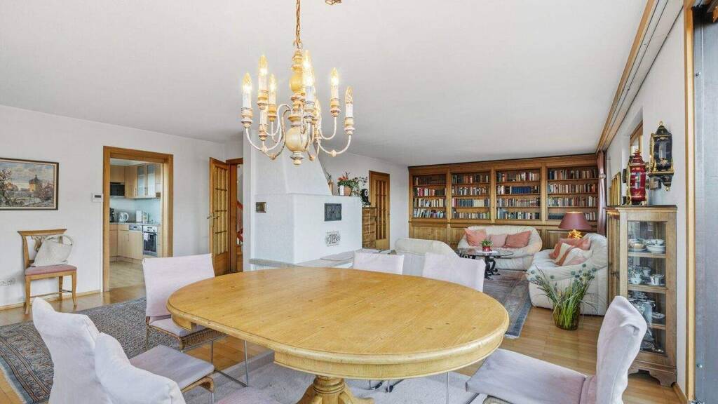Hochwertige Parkett- und Fliesenböden schaffen eine warme Wohnatmosphäre, während die Einbauküche zum Mittelpunkt des täglichen Lebens wird - ein Ort zum Kochen, Genießen und Zusammensein.