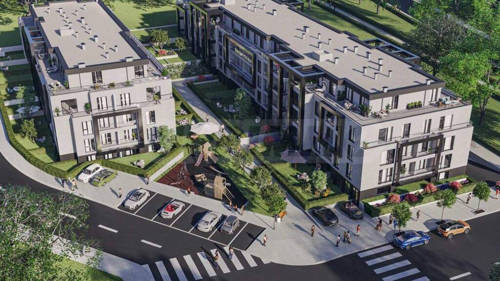 Der Komplex liegt verkehrsgünstig in der Nähe wichtiger Einzelhandelsgeschäfte, des Einkaufszentrums Ring Mall, eines Kindergartens und der Ringstraße. Die Gegend befindet sich im Süden Sofias und bietet Ruhe und frische Luft am Fuße des Berges bei gleichzeitig schneller und einfacher Anbindung an die Innenstadt.