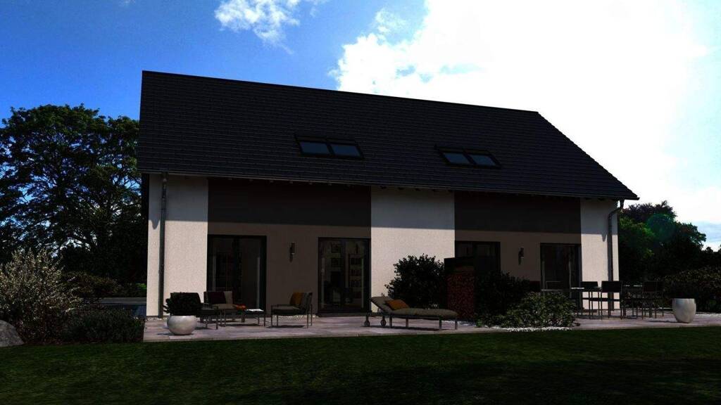 Mehrgenerationenwohnen, Haustür an Haustür mit Freunden oder Zusatzeinnahmen durch Vermietung: Unser Doppelhaus 09 bietet aufgrund der besonderen Grundrissgestaltung zahlreiche Nutzungsoptionen. Denn hier stehen den künftigen Eigenheimbesitzern auf einer Grundfläche von knapp 145 m² zwei identische geschnittene Haushälften und rund 125 m² Wohnraum, verteilt auf jeweils zwei Etagen, zur Verfügung. Das Erdgeschoss überzeugt mit einem offenen Raumkonzept: Der Übergang von der Diele in den großen Wohn-Koch-Ess-Bereich ist fließend - und dennoch bieten Treppenhaus und vorgelagertes Gäste-WC Sicht- und Windschutz. Der Zugang zum gemeinsam genutzten Garten ist aus dem Wohnzimmer möglich. Die großen Tür- und Fensterfronten sorgen zudem für einen Rundum-Lichteinfall. Ein Hauswirtschaftsraum rundet das Angebot parterre ab. Im Obergeschoss und damit unter dem klassischen Satteldach befinden sich neben dem Elternschlafzimmer zwei große Kinderzimmer sowie ein Bad mit Wanne, Dusche und WC. Ein Haus, zwei Wohnungen, keine Kompromisse.