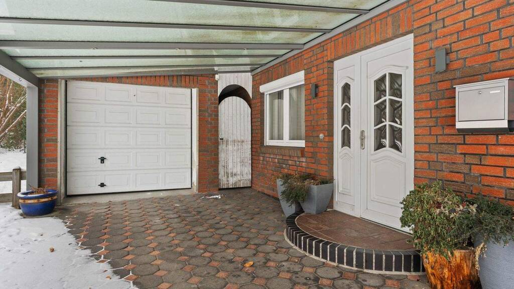 Bereits bei der Ankunft überzeugt die Immobilie mit komfortablen Parkmöglichkeiten: Ein Stellplatz im Freien, ein Carport sowie eine Garage bieten gleich drei Optionen, Ihr Fahrzeug sicher abzustellen.