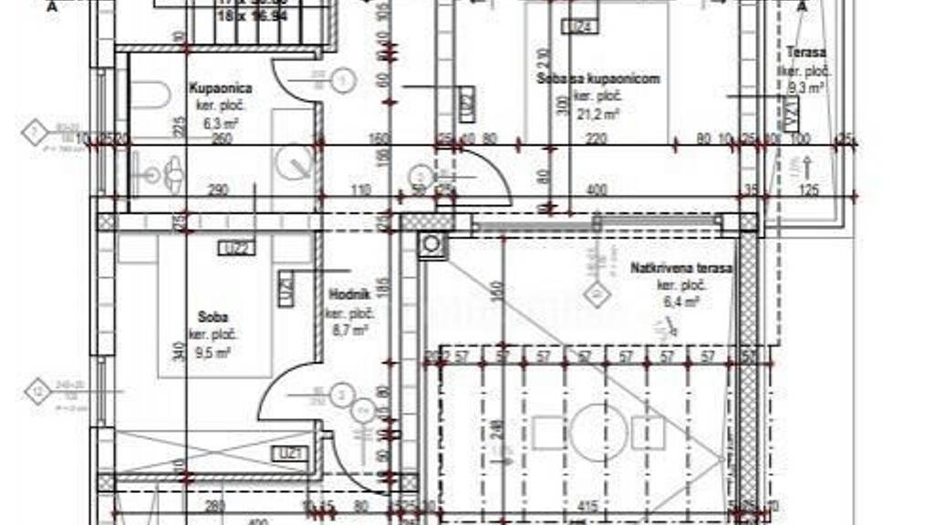 Die Villa besteht aus einem Erdgeschoss und einem ersten Stock. Im Erdgeschoss gibt es einen Flur, ein Wohnzimmer mit Küche und Esszimmer, ein Schlafzimmer, ein Badezimmer, eine Toilette, einen Abstellraum und einen Ausgang zu einer überdachten Terrasse. Das Erdgeschoss und der erste Stock sind durch eine Innentreppe verbunden. Im ersten Stock befinden sich drei Schlafzimmer, eines davon mit eigenem Badezimmer, ein zusätzliches Badezimmer, zwei überdachte Balkone, eine überdachte Terrasse und eine teilweise überdachte Terrasse. Neben dem Grundstück ist auch der Bau eines großen Freibads geplant. Das Haus wird über 2 Parkplätze verfügen. Es befindet sich in ausgezeichneter und ruhiger Lage, ca. 1,4 km vom Meer und den Stränden entfernt.